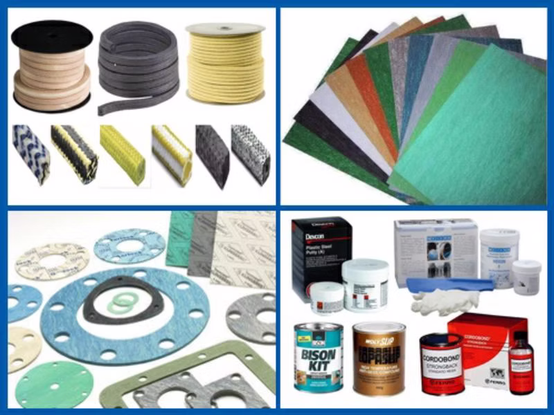 Sealing materials for preventing leaks in piping and machinery.